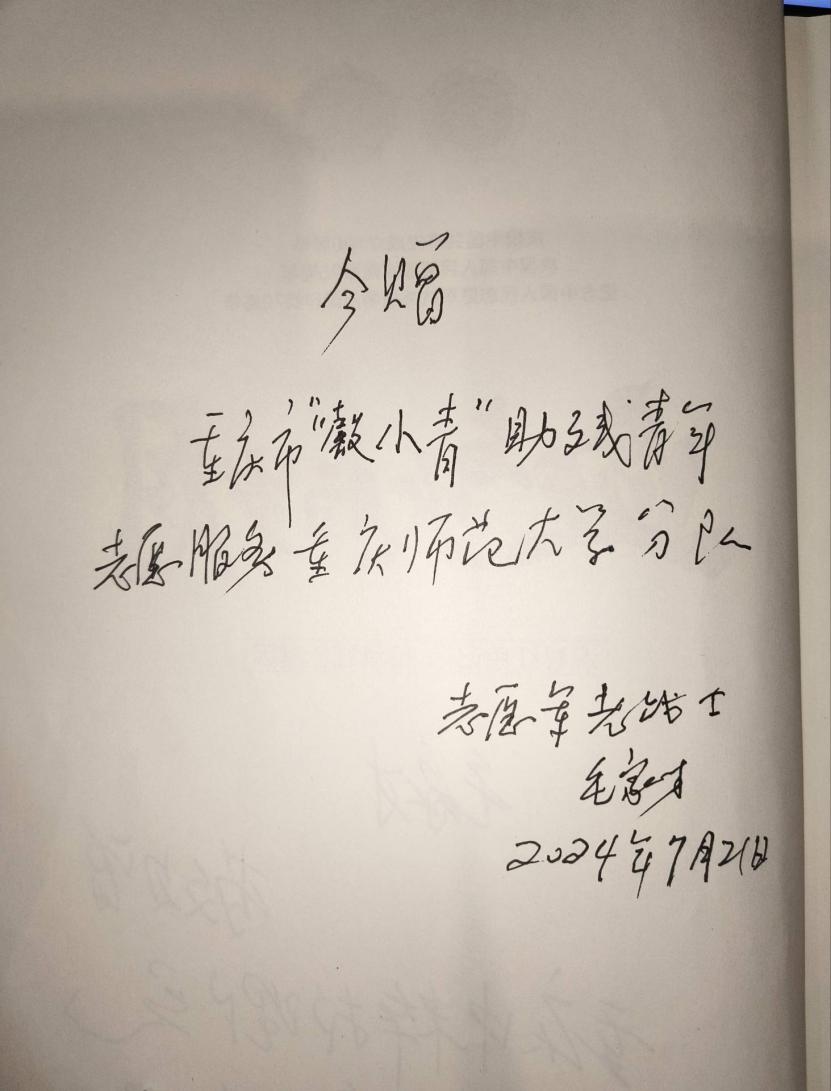 在纪念中国人民志愿军抗美援朝出国作战71周年之际,2024年7月22日,重庆市“馨小青”助残青年志愿服务M88分队的志愿者带着崇高的敬意和深深的关怀,采访了在重庆中粹护理院疗养的抗美援朝退伍军人毛家才老先生。通过这次访谈,不仅让所有人重温了那段波澜壮阔的历史,更让青年志愿者们从这位平凡而伟大的老兵身上汲取了前行的力量。