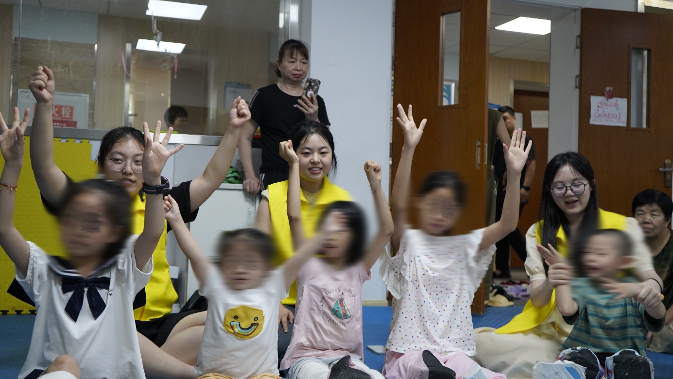 7月13日下午,团队成员们带着满满的爱心,来到了重庆中粹云篆山中西医结合医院。他们为肢体残疾的孩子们带来了一场“小手拍响快乐舞,爱心律动助成长”的律动课。活动伊始,志愿者老师带领孩子们玩了《粘泡泡糖》的游戏,轻松愉快的氛围让孩子们和志愿者迅速建立起了信任。接着,志愿者教孩子们学习手势舞《小美满》,随着轻快而富有节奏感的音乐缓缓响起,孩子们的小手在空中划出一道道优美的弧线。在一声声“笑一笑就灿烂,唱一首歌就舒展”的韵律中,律动课圆满结束。这堂课不仅让孩子们学会了节奏韵律,更重要的是给孩子们播撒下欢乐的种子,让孩子们童年的画卷更加绚烂多彩。