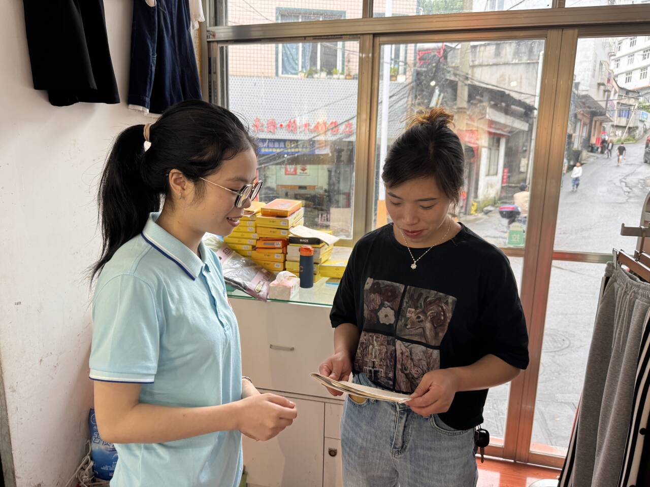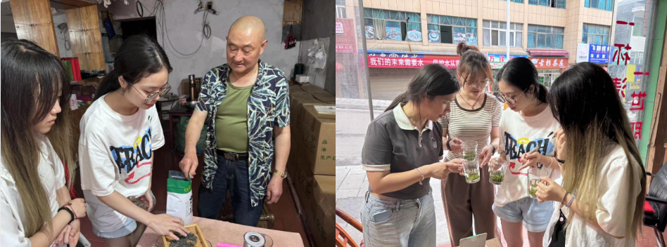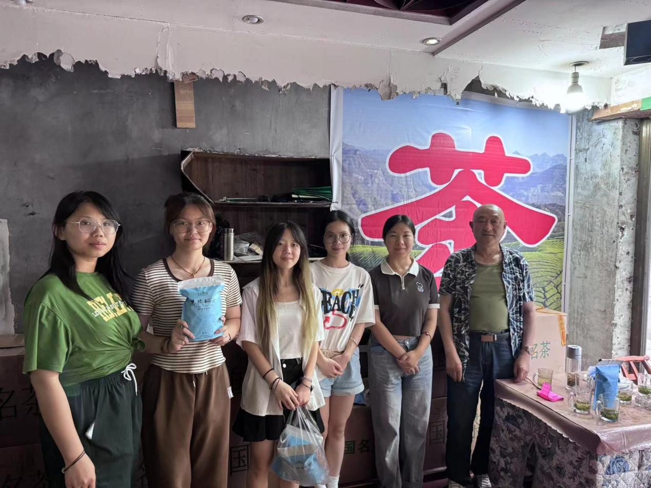 团队来到茶店进行深入了解,茶商为团队成员详细介绍了白沙茶的由来,并表示“官店白沙茶”是当地的招牌茶叶,拥有商标,茶叶属优质茶叶。茶商为团队成员展示了不同茶叶的区别,并冲泡茶汤供团队。团队成员在茶商的指导下区分出优质茶叶和劣质茶叶。团队成员品尝茶汤,均表示优质茶叶的茶香更浓,回味清香。茶商表示由于当地的商业推广不足,交通不便,“官店白沙茶”的知名度不高。线上销售额微薄,线下仅有当地居民和游客进行购买。团队成员通过电商直播、视频推广等的方式为其进行推广。团队成员在既锻炼了自身能力的同时,也为当地经济发展提供了助力。