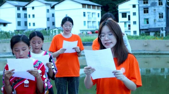 文艺汇演在深情的诗歌朗诵中拉开序幕。实践团成员与当地孩子们一起朗诵诗歌《你是人间的四月天》,由团队成员杨意领诵。朗诵者们满怀热情,将观众引进林徽因诗意的四月天。这不仅展现了文学艺术的魅力,也进一步激发了在场观众对美好生活的向往和追求。