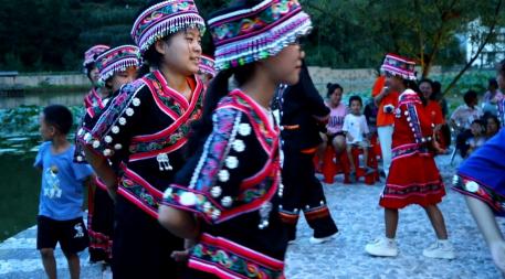 文艺汇演的高潮部分便是精彩的民族舞蹈表演。据悉,团队成员为了呈现良好的舞台效果,特地在汇演前向当地村民认真学习了土家族摆手舞。表演过程热闹非凡,团队成员与当地村民们身着民族服饰,围成一圈,共跳摆手舞,以热情的舞姿和独特的韵律展现出了民族文化的深厚底蕴和独特魅力,也赢得了观众们的阵阵掌声。这场舞蹈盛宴不仅是对乡村文化多样性的生动诠释,更是对民族文化的传承与弘扬。