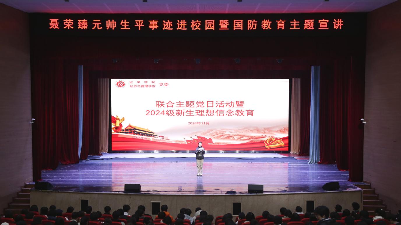 为传承红色基因,赓续红色血脉,培养大学生爱国主义精神和国防安全意识,11月28日下午,经济与管理学院、化学学院于校友会堂联合开展主题党日活动暨2024级新生理想信念教育。经济与管理学院党委书记钟敏主持宣讲,2024级全体新生及教师党员代表参加活动。