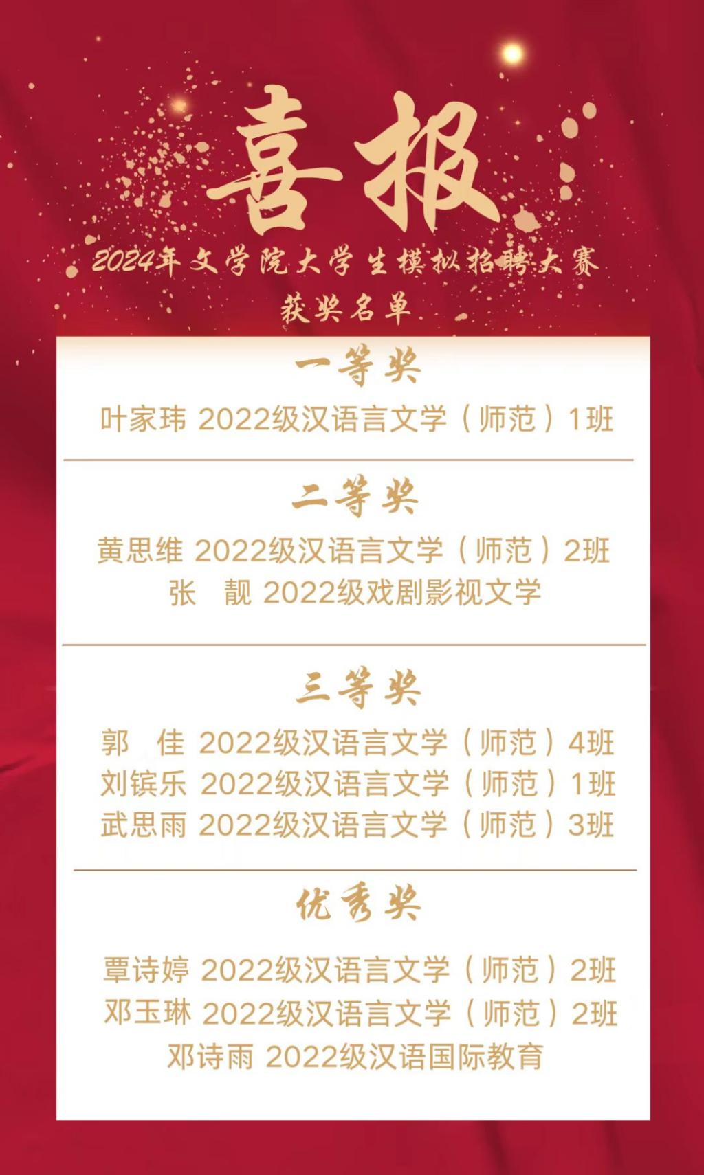 扶摇“职”上 , 妙笔生“划”。文学院第九届模拟招聘大赛院级复赛暨大学生职业生涯规划大赛的顺利举办,不仅展示了我院学子的专业认知,更激发学生对未来职业发展的思考与探索。未来,文学院将以本次大赛为桥梁,进一步指导学生深化对个人职业规划的认知,助力每一位学子将细致规划转化为实际行动,在各自未来的职业道路上不断前行,实现自己的价值和梦想。