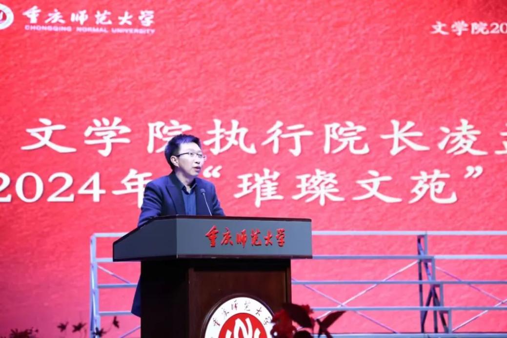 会上,文学院执行院长凌孟华宣读2024年“璀璨文苑”表彰文件。本次表彰大会,旨在表彰在教育教学、科研成果、学生指导、服务成效等方面成果突出的老师们,和在综合表现、专业竞赛、创新创业等方面获得市级及以上奖项和荣誉的优秀学生和先进集体。此次表彰教师共62名,除科研之星39名,教学之星9名,引航之星29名外,新增学科之星17名,鼓励老师们在各自的学科领域内深耕细作,不断创新;表彰学生共40名,其中厚德之星17名、笃学之星20名、科创之星11名。希望全院师生以受表彰师生为榜样,踔厉奋发、勇毅前行,共同推动学院在人才培养与学科发展方面不断迈向新台阶。