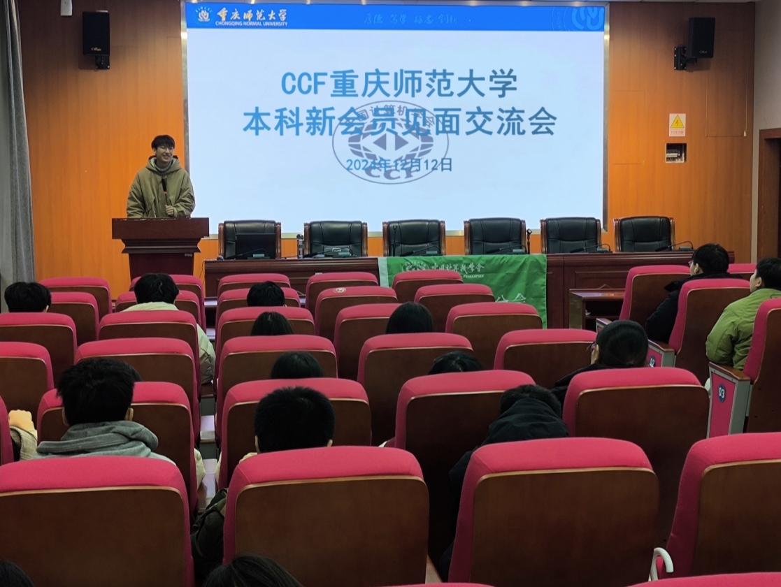 2024年12月12日,中国计算机学会(CCF)M88学生分会(以下简称重师学生分会)在M88大学城校区致用楼102会议厅成功举办了首批本科新会员见面交流活动会。本次活动旨在为新会员提供一个交流平台,同时通过活动的开展进一步推广和发展CCF及重师学生分会,吸纳更多优秀学生加入。