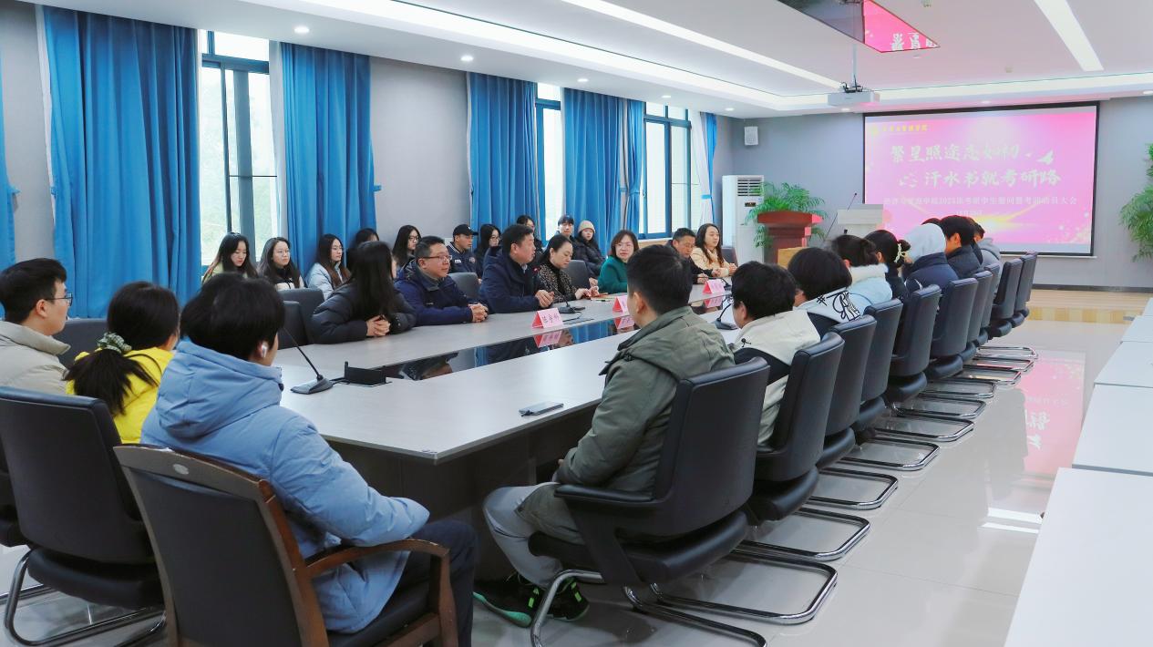 2025年硕士研究生考试在即,为进一步坚定考研学生备考信心,缓解备考压力,轻松上阵,12月20我院于求是楼329举办“考研送温暖”慰问活动。学院全体党政领导和毕业年级辅导员与考研学生代表齐聚一堂,为考研学子加油鼓劲。