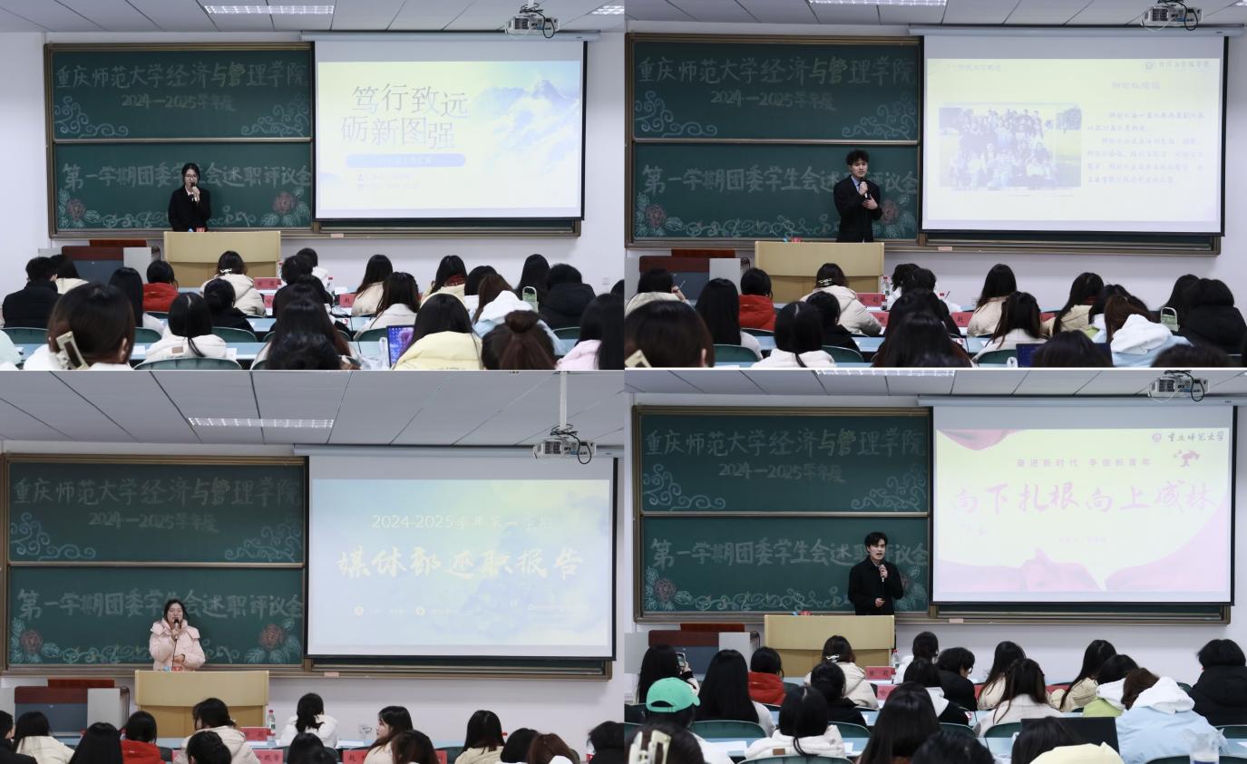 1223日,经济与管理学院团委学生会20242025年度第一学期述职评议会于求是楼421召开学院团委书记兼学工办主任张莉、团委学生会各部门主要负责人以及各年级学生代表参加