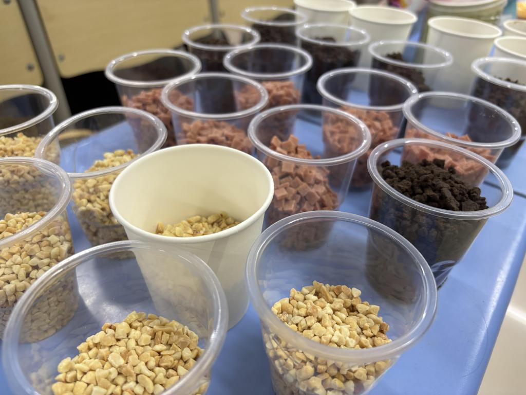 活动伊始,主持人为同学们介绍什么是藕粉以及藕粉制作的具体步骤,通过生动的讲解和视频观看,同学们对藕粉这一美味健康传统美食有了深刻的了解,为后续藕粉制作奠定了坚实的理论基础。在制作环节,同学们依次领取了制作藕粉所需的工具和材料,包括山楂片、花生碎、奥利奥碎、红豆、藕粉、纸杯、勺子等材料。在协会干事的耐心示范与指导下,同学们开始了趣味满满的制作过程。从用水化开到最后添加适坚果,每一步都需要同学们全神贯注把控材料的用量,同学们相互协作、相互交流、不断调整冲兑比例,力求将每一份藕粉都制作为最美味的状态。活动现场,同学们热情高涨,参与度极高,在制作藕粉的过程中不仅锻炼了动手和创新能力,而且增加了对健康饮食的了解和重视,更深刻地体会到了文化自信以及对传统美食的认同感。经过不断的努力,各式各样的可口藕粉在同学们手中诞生