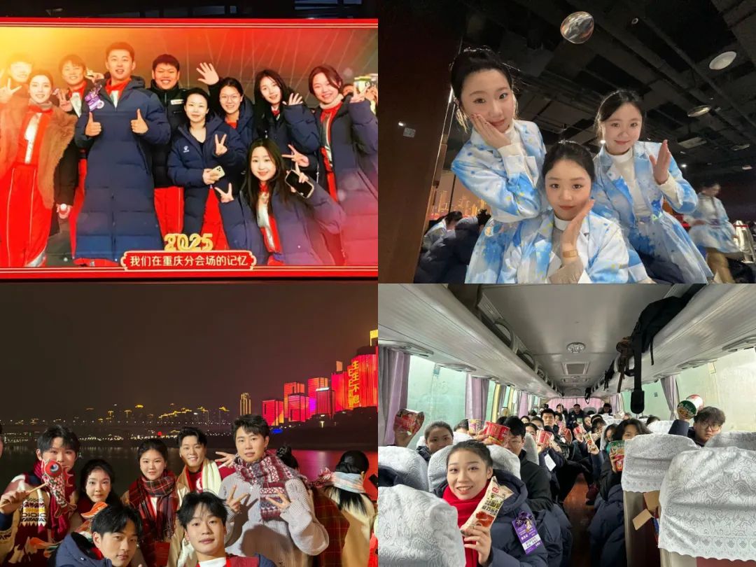 但很快这些困扰都一一有了解答,从确定参与演出开始,学校就从衣食住行、课程考试、心理咨询等各个方面给予了满满的保障。在排练演出现场,我也认识了一群可爱的同学。在春晚倒计时五天之际,我想我已经能够自信的说,在重庆我会收获一个更精彩的寒假,也将过一个意义非凡的年。我感受到学校像家一般的温暖,也收获了缘分般的友谊。”