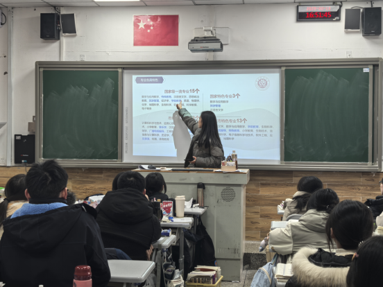 寒假期间,2023级戏剧影视文学专业的何政庆回到大足中学进行宣讲。她首先介绍了学校的基本情况,包括地理位置、学科设置、教学资源等;并且重点讲述了一些热门专业和优势学科,分享学习体验和心得;同时提醒他们要关注自己的兴趣爱好和职业规划,以便更好地选择适合自己的专业。