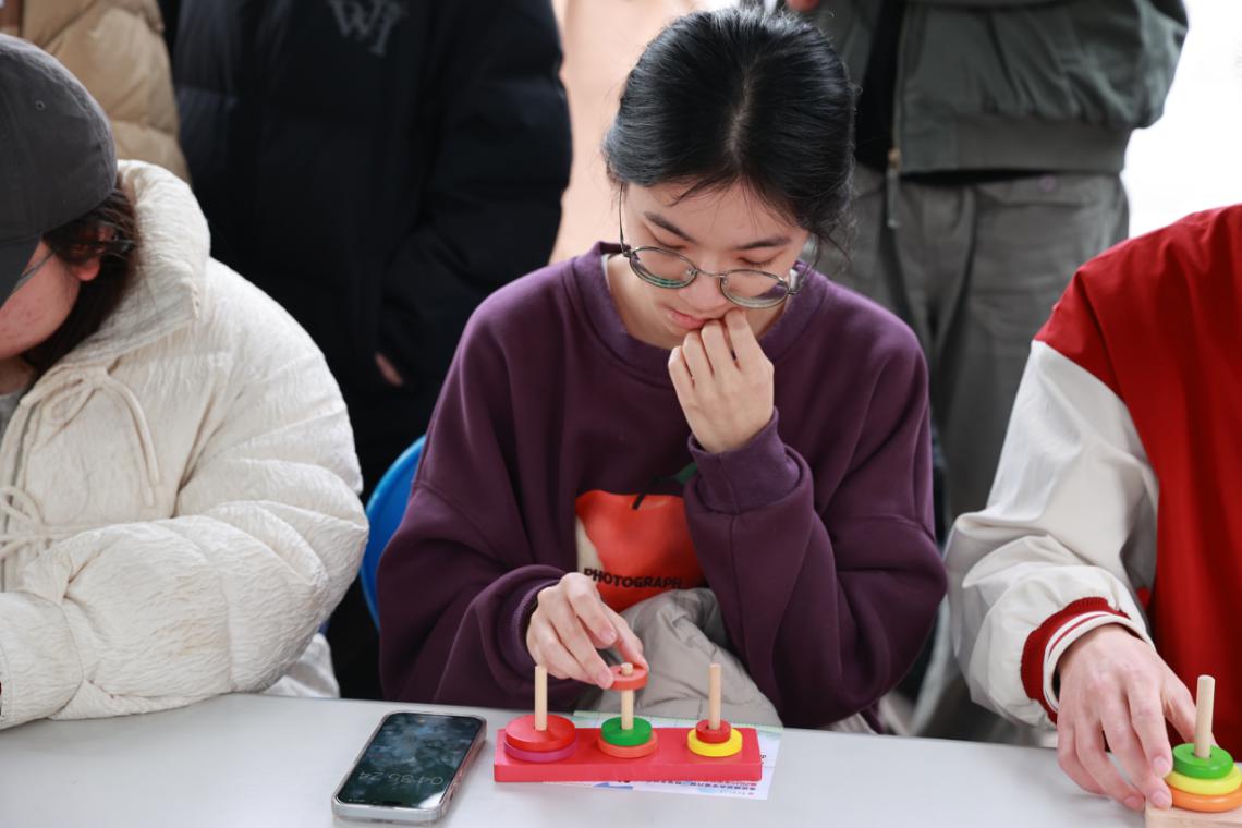 在互动体验区,共设置了数独风暴、智力解环、索玛立方体等十余项互动项目。参与者通过破解密码锁链重构逻辑认知,在立体拼搭中理解空间拓扑,借助博弈游戏领悟概率本质······活动以寓教于乐的形式,让理性思维与艺术灵感交织,在参与者游戏化场景中完成从具象操作到抽象思维的认知跃迁。生动诠释了数学文化"严谨亦有趣,抽象亦可触"的多元价值。