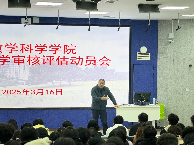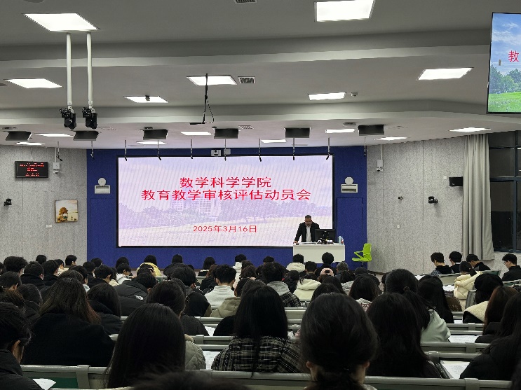 2025年3月16日下午,数学科学学院面向全体本科生召开本科教育教学审核评估工作动员会。会议由学院副院长刘立汉教授主讲,学院党委副书记袁小于主持。