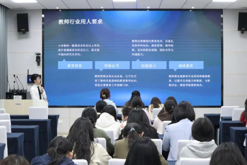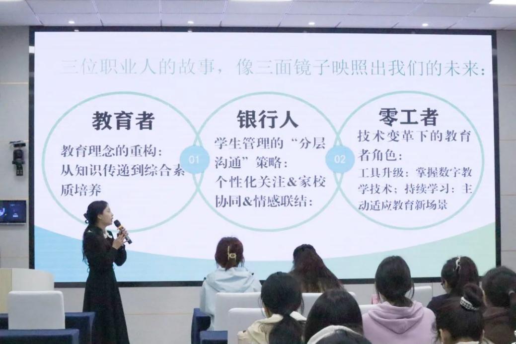 任佳蕴同学基于职场调研结果,剖析人工智能时代中学语文教师的职业前景与岗位需求,引导同学们协调传统与创新、关注科技与人文、把握经典与未来。