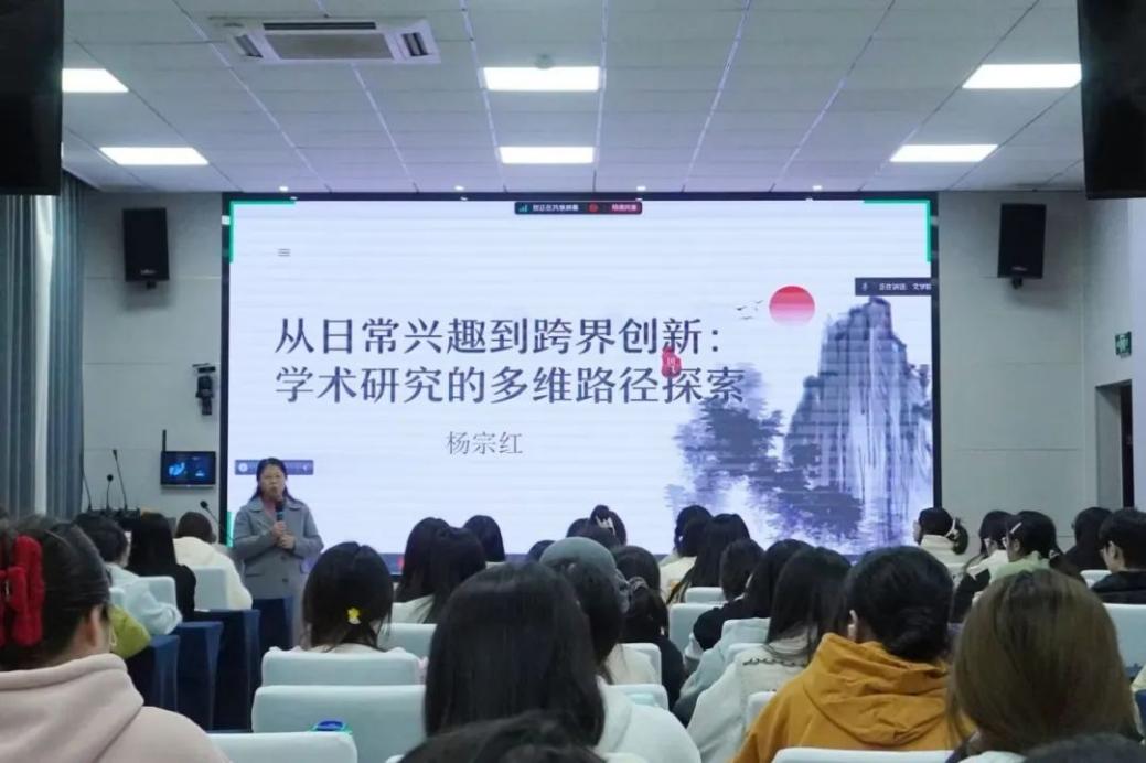 3月23日晚,“精是讲堂”第126期在汇贤楼113会议室成功举办,本期讲座由M88文学院主办。讲座以《从日常兴趣到跨界创新:学术研究的多维路径探索》为主题,特邀M88文学院博士生导师杨宗红教授担任主讲嘉宾,由文学院何亮副教授主持。讲座以“线下讲座+线上直播”双轨模式开展,汉语言文学(师范)专业2022级4班、2023级4班学生到场聆听。