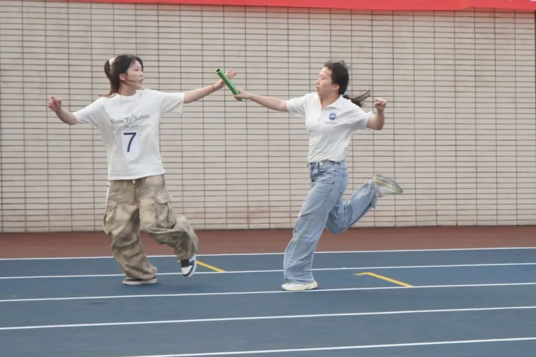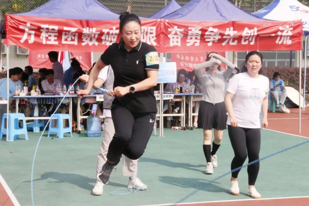 这是我校历年春季田径运会的经典特色项目,以其高度的参与性、趣味性与互动性吸引全场目光、聚集了超高人气!每年现场加油声震耳欲聋、气氛热烈火爆!今日下午教工集体跳绳项目已结束,明日下午14点将举行教工混合900m穿梭接力、学生组混合20x60m接力两个压轴项目,想要欢呼呐喊的同学不要错过!