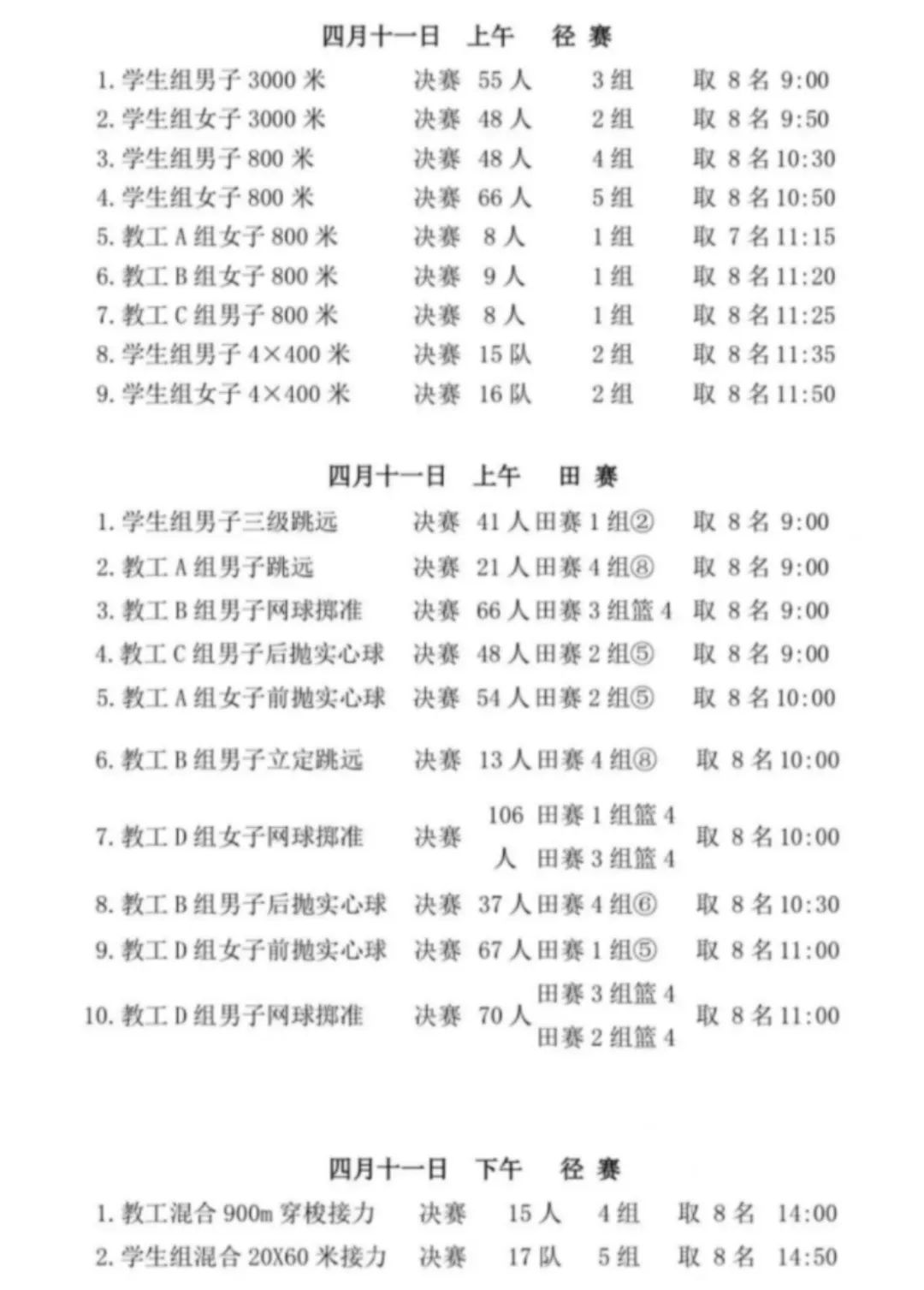 明日赛事精彩继续,将展开女子800米、各类精彩接力赛等多项目激烈角逐,期待运动员们在赛场上超越自我,创造佳绩,在接下来的比赛中赛出风采,赛出水平!