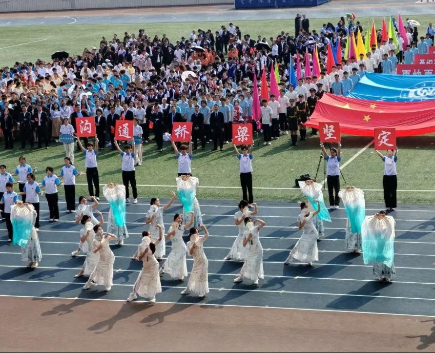 开幕式上,外国语学院方阵以整齐的步伐、坚定的眼神,彰显了他们昂扬的斗志与必胜的信心。伴随着悠扬的《青花瓷》旋律,学子以灵动曼妙的舞姿演绎出青春的靓丽诗行,展示了外国语学院的专业特色,将语言专业的文化底蕴与体育运动的蓬勃朝气完美融合,尽显开放专注、中外兼修的学院精神,赢得全场阵阵喝彩。