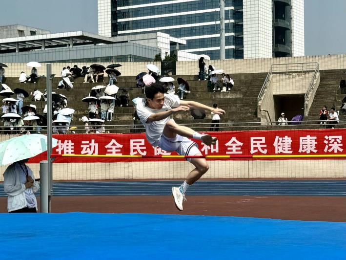跳高,是勇气与技巧的较量。助跑时,运动员加速狂奔,风声呼啸,肌肉紧绷,力量汇聚;起跳瞬间,他们似展翅雄鹰,奋力挣脱地心引力,向横杆冲击,在空中留下震撼剪影。生科院运动员凭借坚定信念和出色技艺,用一次次飞跃,将拼搏与热血幻化为空中最美画卷。