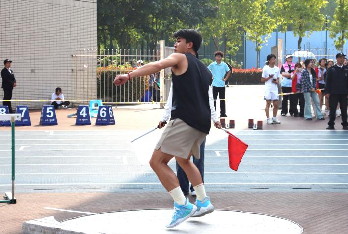 在铅球的赛场,生科院的运动员沉稳站定,俯身执球,腰背弯曲,蓄满力量,恰似即将破土的春笋,于静谧中暗自积攒蓬勃生机。手中沉重的铅球,在他们掌控下仿若化作一抹指尖温柔。刹那间,奋力一掷,铅球划过。随着白旗落下,成绩定格,这一瞬成为书写荣耀的高光时刻。