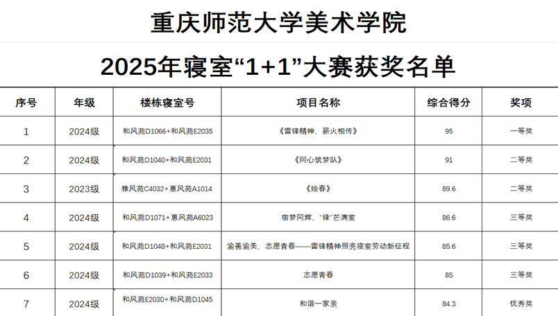 此次活动不仅是对雷锋精神的传承与践行,更是美院学子勇担社会责任的生动体现。通过“渝善渝美志愿青春寝室1+1”活动,同学们深入挖掘雷锋精神内涵,从理论认知上升到切身体会,懂得雷锋精神不仅是无私奉献,更是日常点滴中的互助与担当。同时,活动增强了同学们的集体荣誉感,大家为集体荣誉而战,在相互鼓励与支持中,强化了对集体的归属感和认同感,凝聚成推动志愿服务持续发展的强大合力。