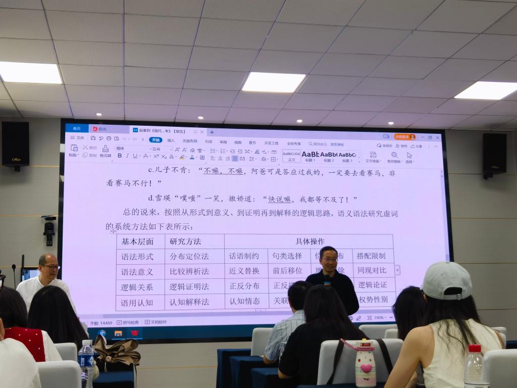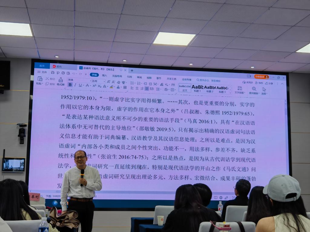 赵春利教授的讲座逻辑严密、例证充分、风趣幽默,极具启发性。讲座的结尾,朱怀教授对讲座内容进行了总结。最后,本次讲座在同学们的热烈掌声中落下帷幕,在场同学表示,此次讲座不仅增进了他们对现代汉语虚词的理解,也为他们的学术研究提供了新的视角。