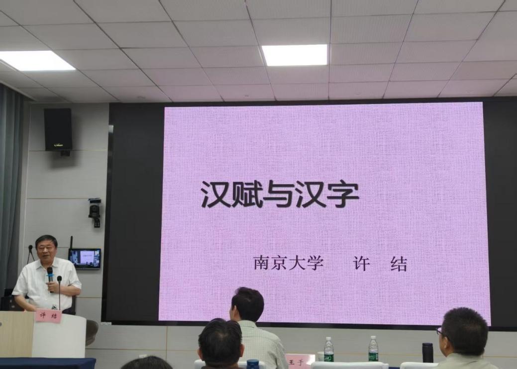 讲座伊始,许结教授围绕“汉赋与文字”这一核心议题展开了深入的研讨。许教授指出,汉赋作为中国独有的伟大文学成就,其传播始于19世纪,主要历经三个重要节点,实现了从中国走向世界、再从世界返归东亚圈的历程。接着,许结教授以“汉赋为何伟大?”为引,指出汉赋作为文学对语言文字的贡献亦十分重大。他援引《诗序正义》与《汉书·王褒传》,指出汉赋具有口诵的特征,只要在人类社会,就要回到“人音”。王褒《洞箫赋》写音乐,用不同的字词表现声音,从而创造了大量的汉字。以王褒《洞箫赋》为例,其通过丰富的字词摹写声音,推动了大量汉字的创制。汉赋创作催生众多新字,西汉赋家多兼通小学、文字学,足见汉赋成就不仅限于文学领域,在文字学层面也意义深远。如司马相如《梨赋》“唰喇其浆”、《大人赋》对车声的刻画,皆展现汉赋为再现万物形象,于汉字创新上的独特价值。