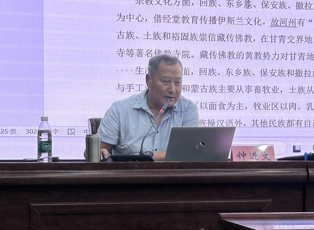 讲座深入分析了甘青地区的地理空间特征对民族关系的塑造。河湟谷地作为农业与牧业的过渡带,孕育了“河州话”“唐汪话”“五屯话”等混合语言;河西走廊作为古代丝绸之路要道,推动了伊斯兰文化、藏传佛教与中原文明的交融。钟教授特别指出:“甘青小民族的‘边缘性’恰是中华文化‘向心凝聚’的缩影,其语言文化的‘过渡特征’印证了中华民族多元一体的历史逻辑。最后,钟进文教授建议:“未来需加强民族学、语言学、历史学的跨学科合作,挖掘‘三交’背后的微观叙事,为铸牢中华民族共同体意识提供区域经验支撑。”