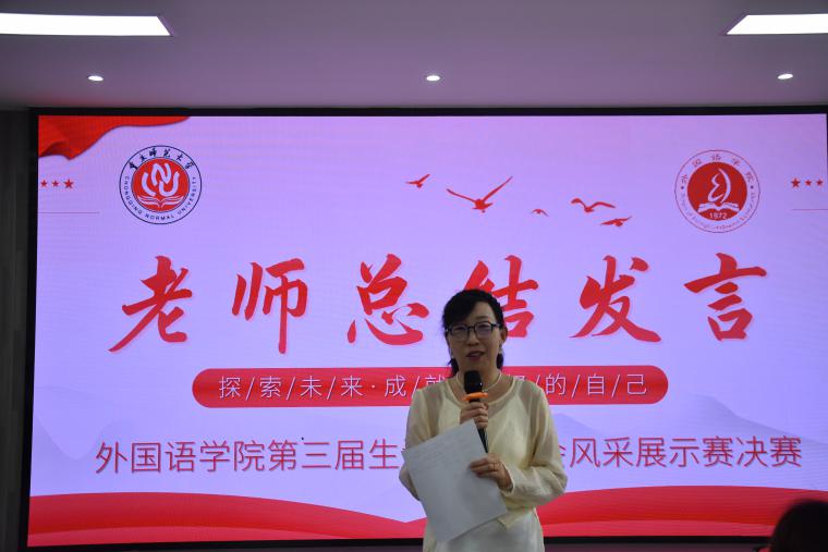 决赛现场,入围班级通过系统化的PPT展示与专业答辩,全面呈现了班会的理论框架、实施路径与成效评估。参赛班级立足外语专业特色,创新性地将思政元素融入生涯教育内容设计。以“积极融入地方经济社会发展”为主题的班级,聚焦重庆市地域特色,设计了“学业规划与地方产业对接”环节,增强同学们的生涯规划意识;以“求职技能学习与实战模拟”为主题的班级,则通过模拟面试场景,提升同学们的求职实战能力。展示结束后,评委老师从教育目标达成度、形式创新性、学生参与度等维度进行专业点评,既肯定了将专业学习与职业发展有机结合的实践探索,也就提升活动针对性提出了建设性意见。最后,2021级师范辅导员郭婷老师在总结中表示,要持续强化专业能力与职业素养的协同培养,通过系统化的生涯教育助力学生高质量发展。