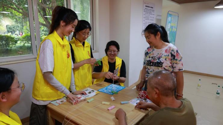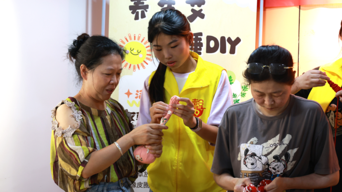 “馨小青”志愿者们还开展了欢乐套圈圈、养生艾草锤DIY、“你抓我逃”等丰富多彩的实践活动,志愿者和老人们一同在轻松愉快的氛围中增进情感交流,打破沟通隔阂。