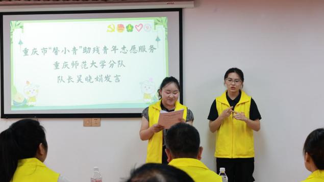 重庆市“馨小青”助残青年志愿服务M88分队队长吴晓娟代表团队发言。她表示,团队始终坚持“学以致用、知行合一”的理念,将课堂中所学的特殊教育知识、手语技能、法律常识等为志愿服务行动赋能。