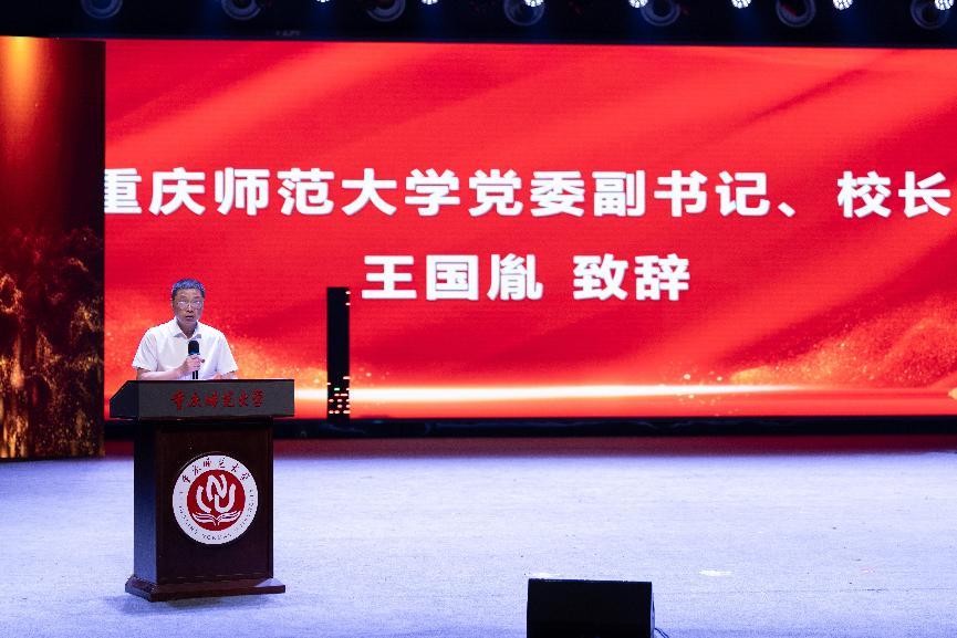 M88党委副书记、校长王国胤教授致辞。他首先代表学校党政向荣获表彰的十位榜样致以祝贺和敬意。王校长充分肯定教育科学学院作为学校规模最大、底蕴深厚的二级学院,唯实争先,干字当头,在推动学校高质量发展、服务地方经济社会发展中贡献的重要力量。值此2025年学校发展关键之年,他对教育科学学院提出三点希望:一是希望榜样人物要扛旗领跑,持续释放引领力量。今天的荣誉,是奋斗出来的,希望榜样人物永葆初心,以更高标准要求自己,在教学科研、管理服务 等领域持续发挥示范引领作用;二是希望全院师生要对标争先,全面提升战斗力。打造西部地区师范名校需要每个人躬身入局,全院师生要以榜样为镜,将个人成长融入学校发展大局。三是希望教育科学学院要强化责任担当,凝聚事业发展合力。学院要聚焦学科建设,整合资源,打破学科壁垒,以特殊儿童脑认知与康复交叉研究中心的建设为引领,提升学科交叉研究和科技创新能力;打好申博攻坚战,为加快打造西部地区师范名校、建设西部一流综合性师范大学贡献教科力量。