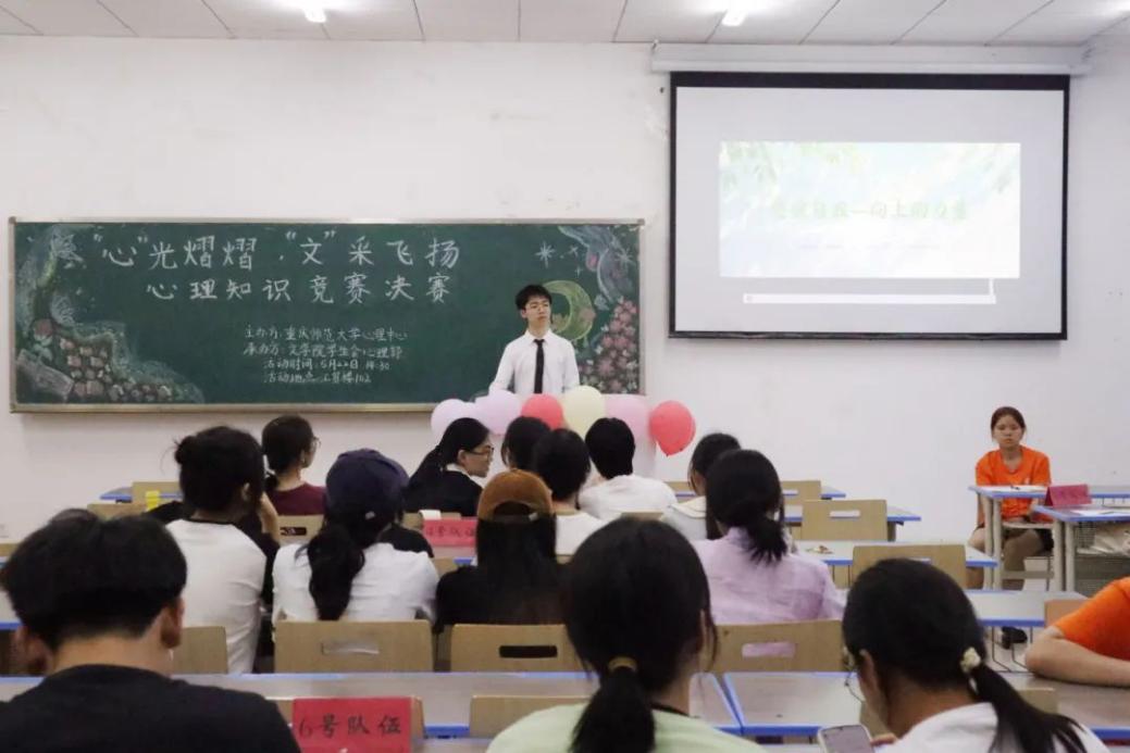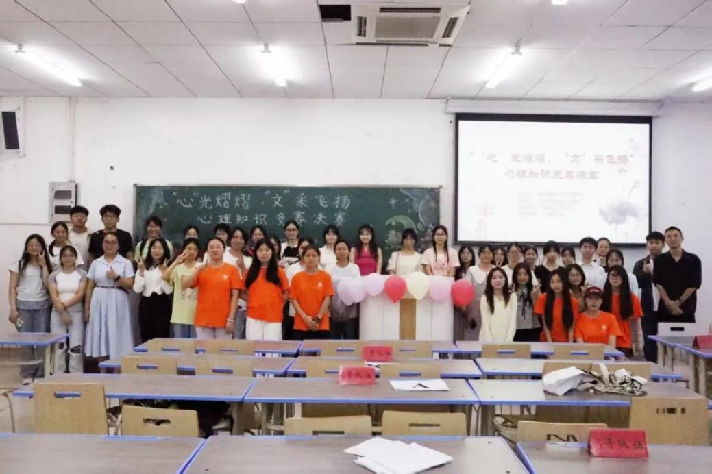 为深化心理健康知识普及教育,增强学生自我关爱能力,营造积极健康的校园环境,学校启动“五育并举,启智润心”第十九届大学生心理健康活动月。文学院积极响应号召,于5月22日14时30分在汇贤楼102教室承办“‘心’光熠熠,‘文’采飞扬”心理知识竞赛决赛,全校85支队伍竞争,最后10支队伍脱颖而出,晋级决赛。