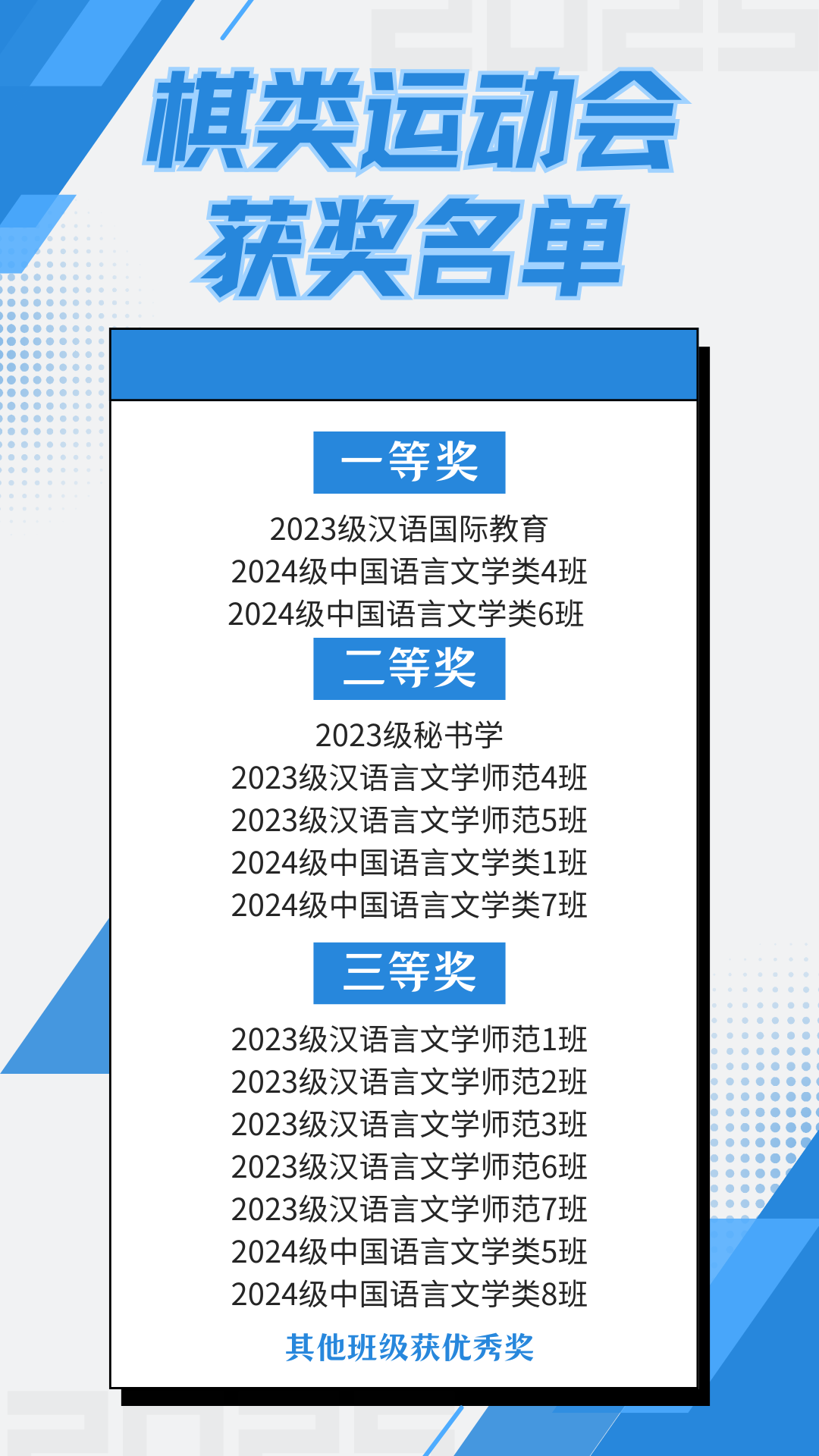 智亦青春,“棋”乐无穷。此次运动会以棋为媒,搭建起思维竞技与团队协作的平台,既展现了文学院学子的策略智慧与沉着风采,也在对弈交锋中深化了同学情谊,促进班级交流。未来,文学院将积极推进体育文化建设,深化体育教育内涵,助力学生全面发展,营造积极向上的学院氛围。