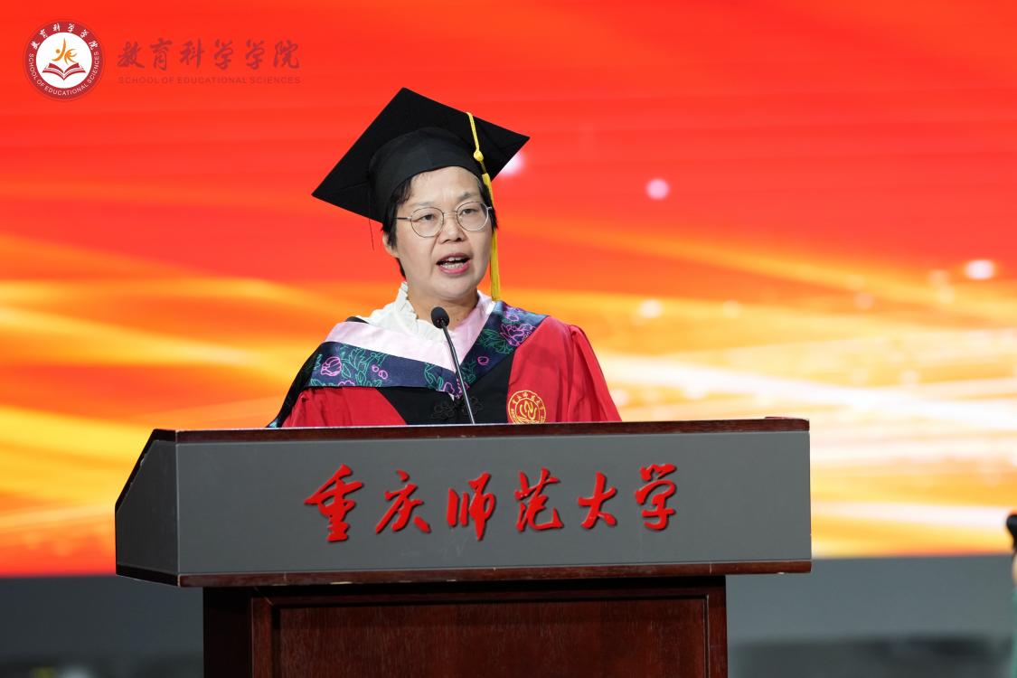 梁玉音老师期望同学们带着学院赋予的底气勇敢出发,以后,既要照顾好自己、接纳不完美,也要将专业素养与同理心、包容心融入未来岗位。她表示,教科院永远是同学们温暖的家,无论大家走到哪里,老师们将在此守望。最后,她衷心祝愿毕业生前程似锦、步履从容,心怀热爱、眼中有光!