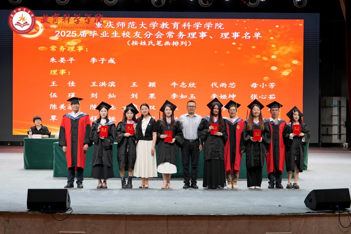 教育科学学院校友会秘书长、党委副书记李林霖宣读教育科学学院2025届毕业生校友分会常务理事、理事名单。
