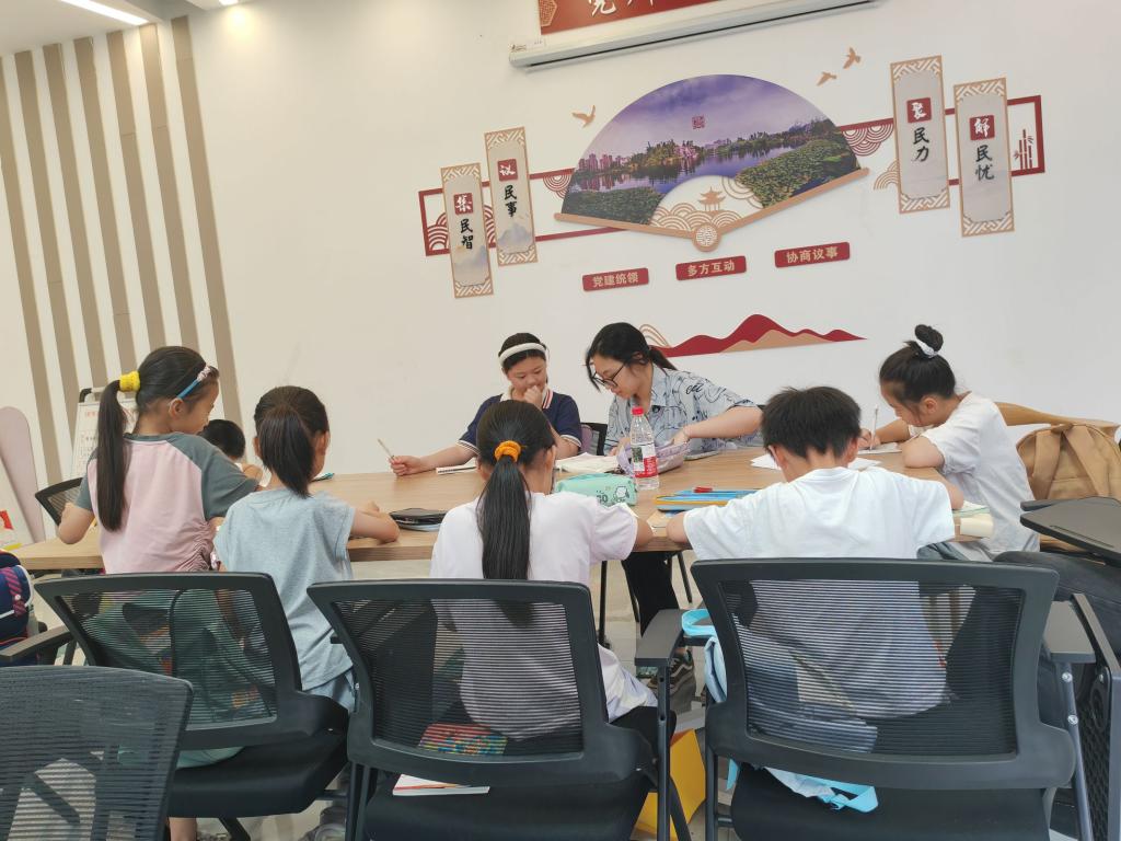 图2“七彩假期,情暖童心”团队成员辅导学生作业 拍摄者:唐瑶
