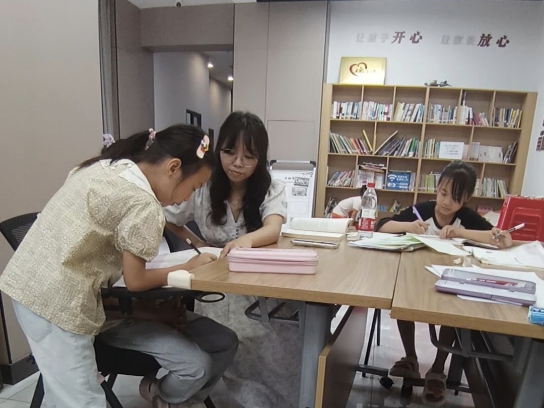 图3“七彩假期,情暖童心”团队成员辅导学生作业 拍摄者:黄婷