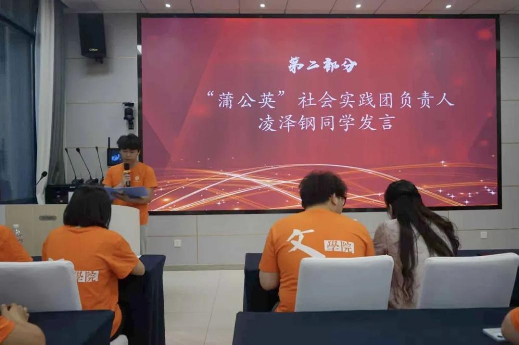 仪式上,主持人马帅同学汇报了本次“三下乡”社会实践的基本情况。随后,“蒲公英”社会实践服务团负责人凌泽钢作为学生代表发言,表达了响应总书记“自找苦吃”号召、积极投身实践的决心。他强调,青年学子应将专业与实践相结合,在服务中增长才干本领。