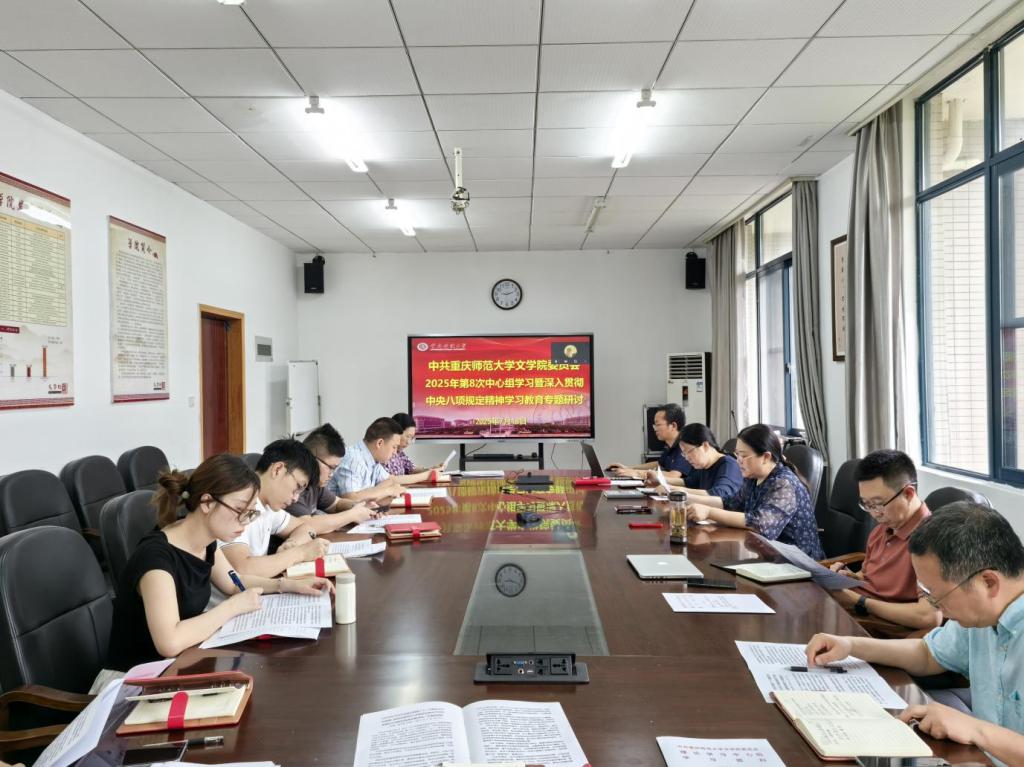 为深入学习贯彻中央八项规定精神,文学院党委于7月18日在汇贤楼406会议室举行了2025年第八次党委理论学习中心组学习会暨深入贯彻中央八项规定精神学习教育专题讨论,学院党委委员、科级干部以及党支部书记参加此次会议。