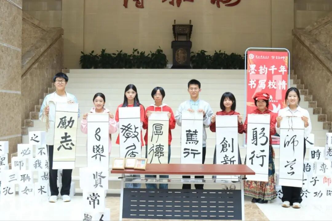 在"墨韵千年·书写校情"书法展示区,两位校友对母校学生社团书法协会以书法形式呈现校训与重师精神的形式表示赞赏,认为活动既彰显了中华书法艺术的博大精深,又以校训与重师精神关键词,展现了重师校园文化底蕴。