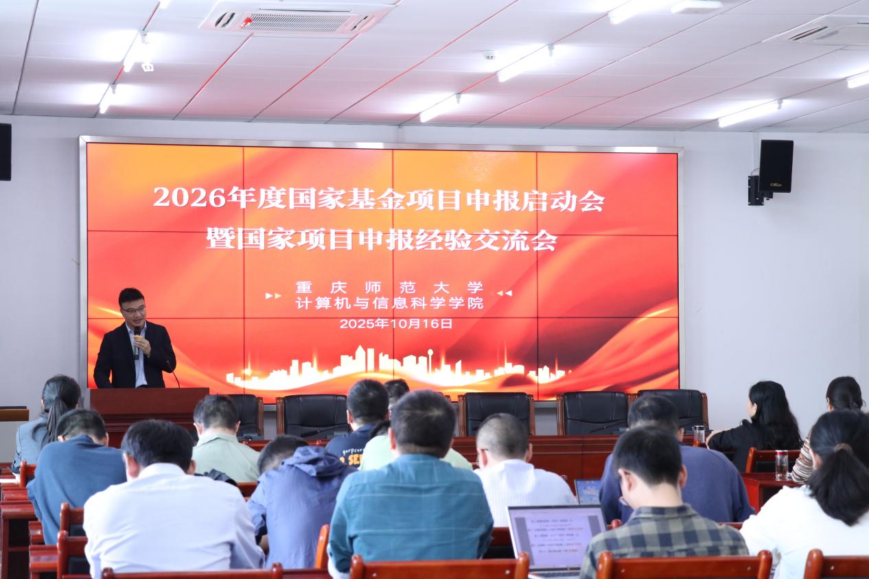 10月16日下午3:00,计算机与信息科学学院在致用楼319会议室召开了2026年度国家基金项目申报动员大会暨国家项目申报经验交流会。此次会议旨在统一思想,凝聚共识,明确目标,全面启动学院新一年度国家基金项目申报工作,为教师个人成长和学院整体发展注入强劲动力。会议由院长助理桑彬彬老师主持,副院长崔少国教授作了动员讲话,王军书记作了总结强调。计信学院全体教师参加了。