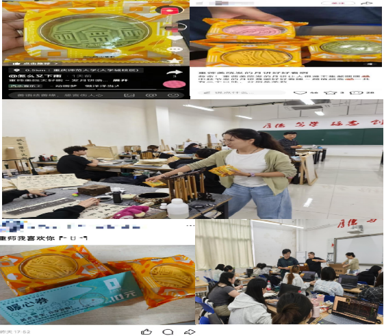 随后,学院领导与2025级新生辅导员张睿晓老师一同将重师文创月饼发放到大家手中,美院老师对学生的暖心慰问为新生军训增添了一抹靓丽的色彩,在现场,老师们与学生代表进行了合影,一份份心意满满的物资,让新生们在军训现场切实感受到了学院的贴心关怀。