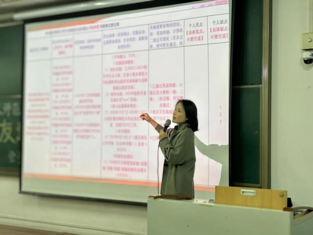 彭臻老师围绕发展党员工作实际情况,从入党的基本条件、程序,时间节点、考核方式等方面进行详细介绍;以往届优秀毕业生案例切入,勉励同学们坚定理想、明确目标,夯实师范技能、提升专业能力;鼓励同学们将个人成长与国家发展相结合,锤炼品德修为,深耕专业知识,积极参与校园实践与志愿服务。