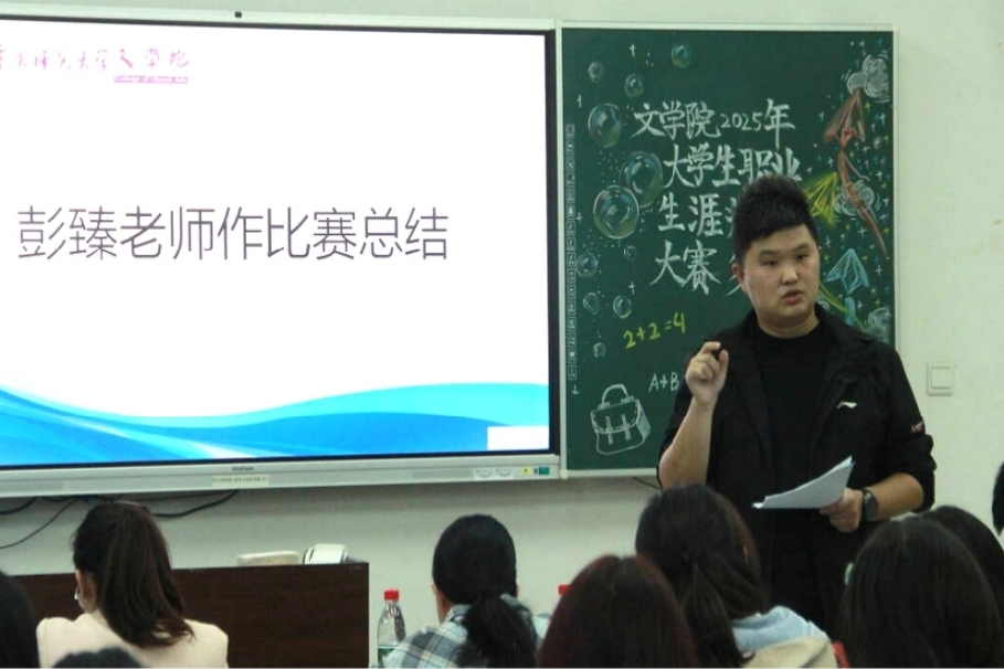 随后,彭臻老师作总结发言,肯定了同学们准备充分、表现自信,并提出四点建议:一要加强自我认知,结合自身情况制定发展规划;二要深入了解外部职业环境,把握就业形势与岗位需求;三要科学设定职业目标并行动,明确路径与策略;四要动态评估与调整,持续优化生涯规划。