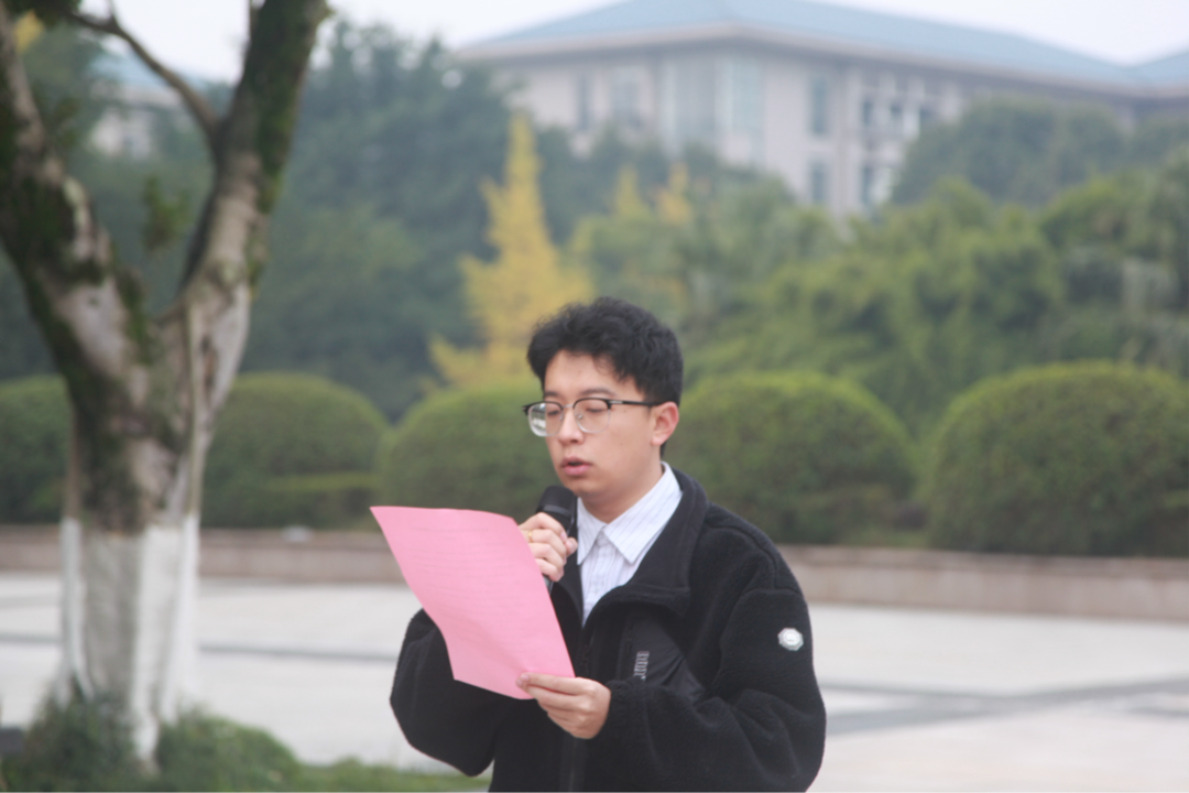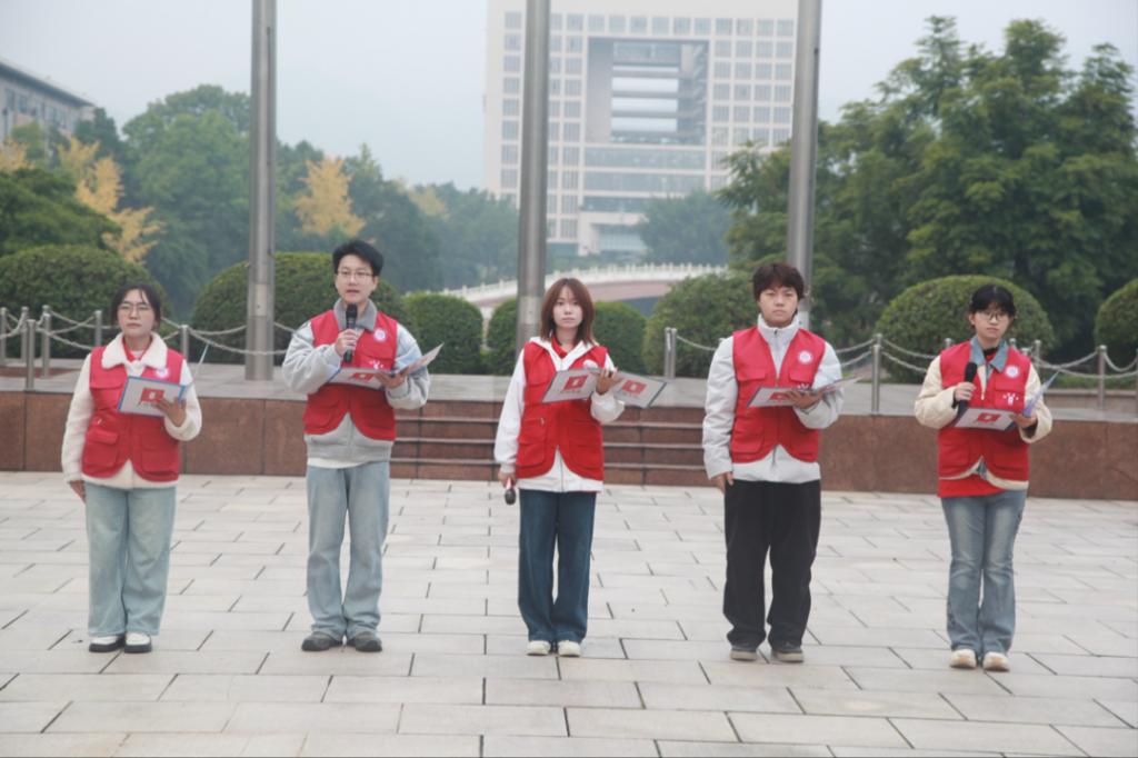 “欢歌将代替了悲叹,笑脸将代替了哭脸,富裕将代替了贫穷,康健将代替了疾苦······”在国旗下,2025级新生代表们诵读了方志敏烈士的经典名篇《可爱的中国》。字句铿锵,情感真挚。在他们的朗诵中,革命先辈笔下那个“明媚的花园”仿佛就在我们眼前徐徐展开——这不正是我们矢志不渝,用艺术去创造、去美化的未来吗?这既是诗朗诵,更是灵魂洗礼,也是美院学子对“何为可爱中国,何以报效祖国”的时代回答。
