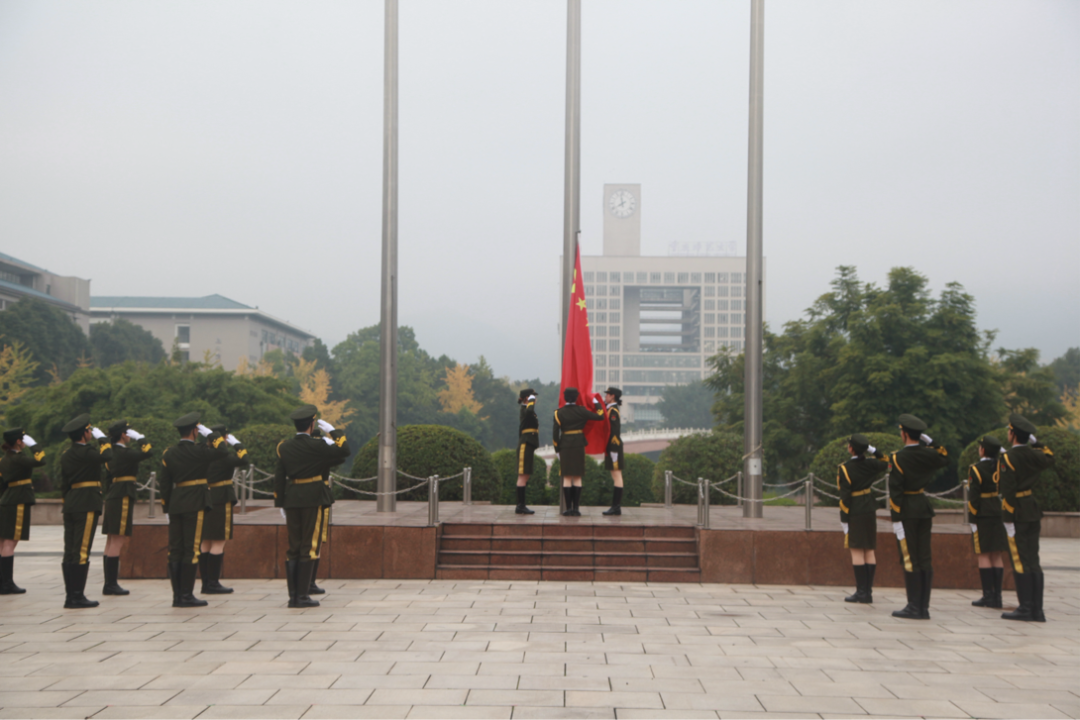 7时40分,国旗护卫队迈着铿锵步伐护送五星红旗入场。伴随雄壮的《义勇军进行曲》,国旗冉冉升起,全体师生齐声高唱国歌,激昂歌声响彻校园。
