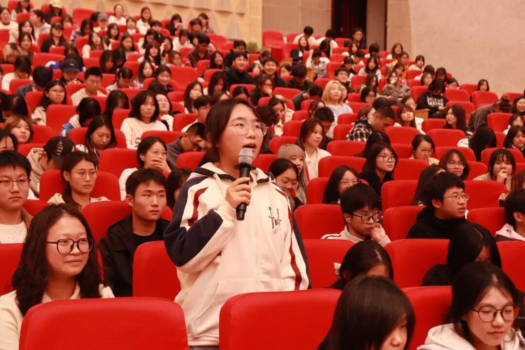 在师生互动环节,老师们耐心解答同学问题。学院老师们从专业与社会结合,与时代同频的角度出发,为各位同学们提出中肯建议,希望同学们打牢理论基础,掌握自主学习能力,善用学习工具,回应时代所需。