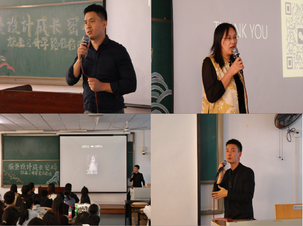 分享会上,黎洲学长以自身从本科到博士的求学经历为引,围绕“就业选择、升学规划、综合能力提升”三大核心板块展开分享。结合服装设计专业“理论学习—实践操作—创新突破”的成长逻辑,他系统拆解了专业学习各阶段的核心任务与能力要求,从基础设计理论夯实、面料特性钻研、工艺技法实操,到设计思维锤炼与创新能力培养,同步给出适配规划建议,让学生对专业进阶路径有了清晰认知。此外,他还展示并详解求学期间的代表性设计作品与学术研究成果,用具象案例直观呈现专业学习价值内核,为学生提供贴合实际的成长指引。