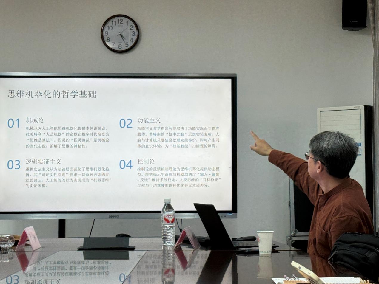 2025年11月9日上午,由M88文学院主办的“精是讲堂”学术讲座第168期在汇贤楼文学院406会议室举行。本期讲座特邀华东师范大学王峰教授进行了题为“人,智能机器”的讲座,由文学院贾玮教授主持,文学院部分教师、研究生到场聆听讲座。