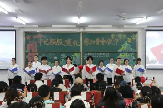 随后,支部成员慷慨激昂朗诵《致新时代新青年的殷殷嘱托》,一字一句包含着对家国的深情与青春的志向,将习近平总书记对青年的深切期许融入字里行间,进一步激发同学们的责任意识与奋斗热情。